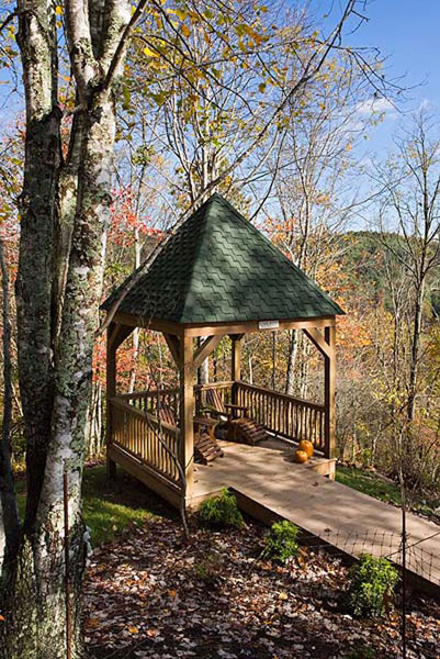 The back deck, which leads down to a gazebo, is the Woods' favorite spot on the property. This is where the couple's three daughters and other family members and friends congregate during vacations. "An extended deck and gazebo aren't that common in these kinds of homes," says Allen Lankford of the W.A. Lankford Company, a contractor who frequently partners with Pete to build log homes. "It's a beautiful place, and my crew loved working there."